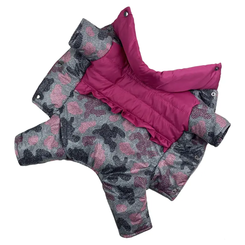 МОДЕЛЬ ДЛЯ ДІВЧИНКИ, живіт ЗАКРИТИЙ тканина водовідштовхувальна плащівка наповнювач синтепон всередині подклад утеплювач фліс модель для дівчинки, живіт закритий застібається кнопками на животі є проріз для повідця