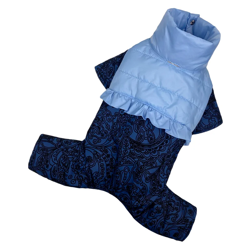 Зимовий комбінезон для дівчаток рюша візерунки синiй AD-28