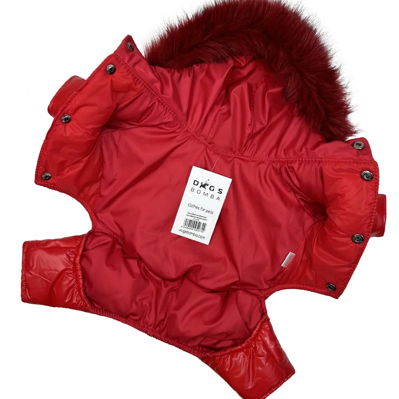 тканина водовідштовхувальна плащівка наповнювач синтепон підкладка нейлон капюшон з кнопкою фіксатором опушка штучне хутро рукава, штани, пояс з резинкою на шиї проріз для повідця застібається кнопками на животі модель унісекс