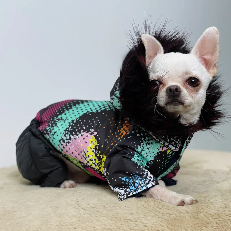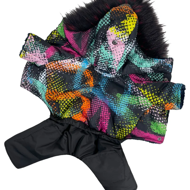 Зимовий комбінезон на хутрі абстракція кольоровий AM-23