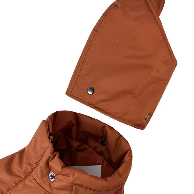 тканина водовідштовхувальна плащівка наповнювач синтепон подклад водовідштовхувальна плащівка застібається змійкою на спині обхват грудей регулюється поясом на горловині шлейки для одягання повідця капюшон можна підвернути і носити високим коміром капюшон відстібається (знімний) на спинці світловідбиваючі стрічки модель унісекс