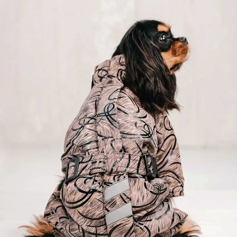 тканина водовідштовхувальна плащівка наповнювач синтепон подклад водовідштовхувальна плащівка застібається змійкою на спині обхват грудей регулюється поясом на горловині шлейки для одягання повідця капюшон можна підвернути і носити високим коміром капюшон відстібається (знімний) на спинці світловідбиваючі стрічки модель унісекс