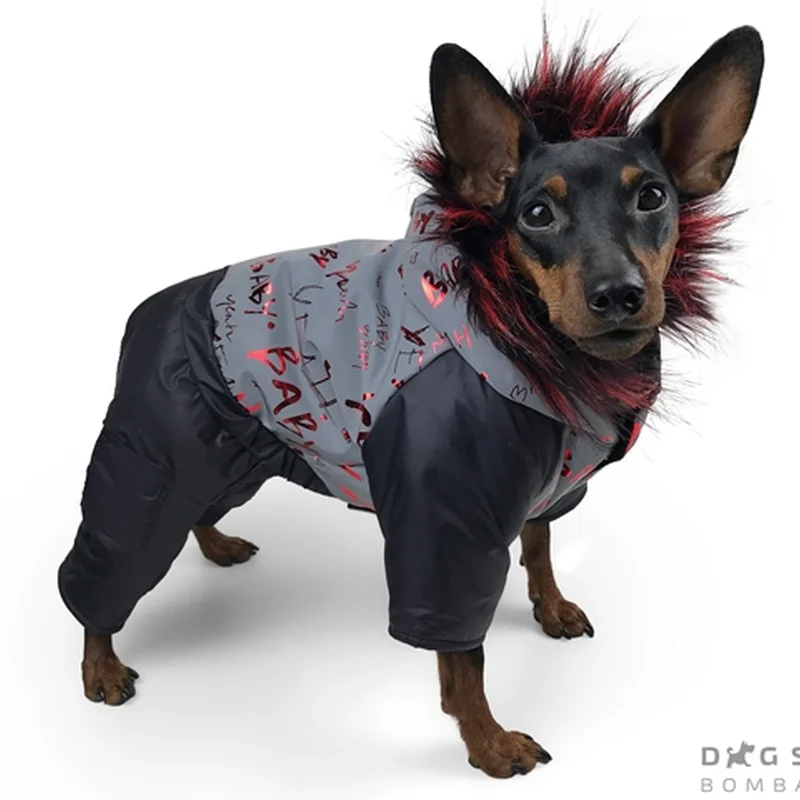 тканина світловідбиваюча плащівка комбінезон світиться при направленні на нього будь-якого світла перше фото в темряві, при направленні світла на комбінезон кращий вибір для безпечних прогулянок ввечері, собаку видно на дорозі наповнювач синтепон (200 г / м²) підклад з водооталкивающая плащової тканини на шиї отвір для повідця капюшон з кнопкою фіксатором комірець стійка застібається кнопками на животі модель унісекс